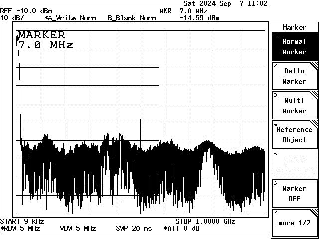 WVU-604F2~4の外部LPFなしで本機に直結して、アンプ出力5W時の特性です。